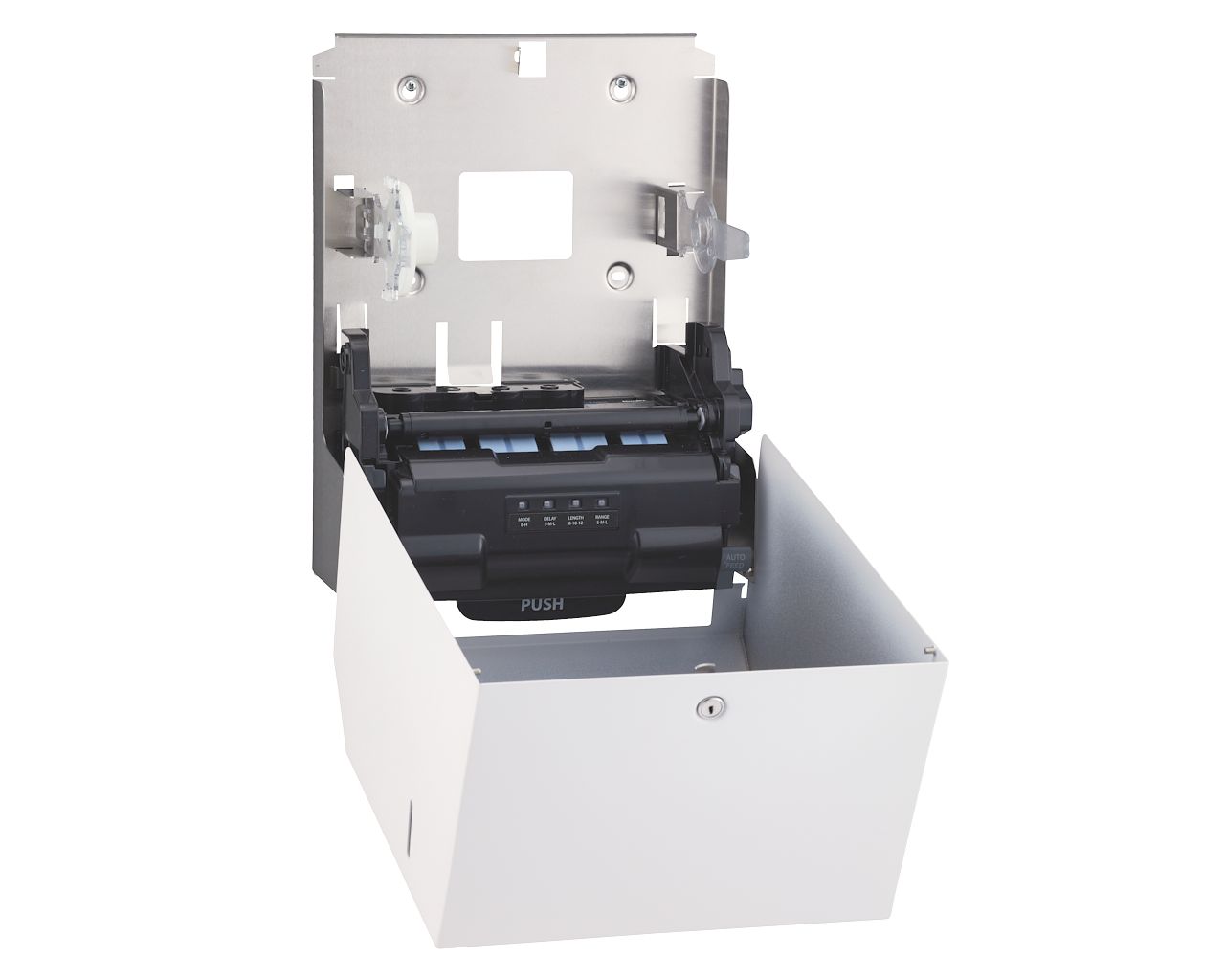 – w sytuacji awaryjnej ręcznik można wysuwać przez naciśnięcie dźwigni PUSH, znajdującej się w dolnej części podajnika
