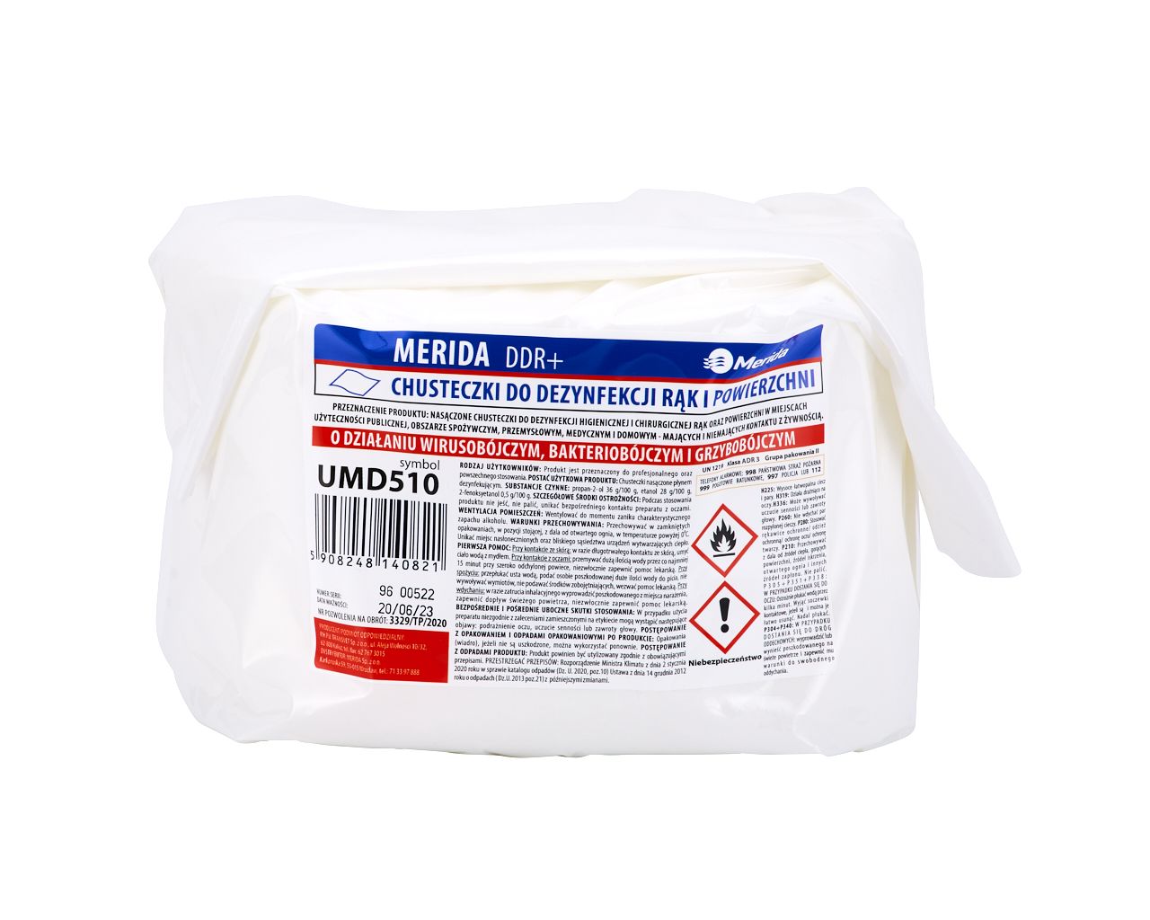 – chusteczki Merida DDR+ to produkt zawierający mieszaninę trzech substancji czynnych (etanol, izopropanol i fenoksyetanol), skutecznych w walce z grzybami, bakteriami i wirusami (pozwolenie na obrót produktem biobójczym nr 3329/TP/2020)