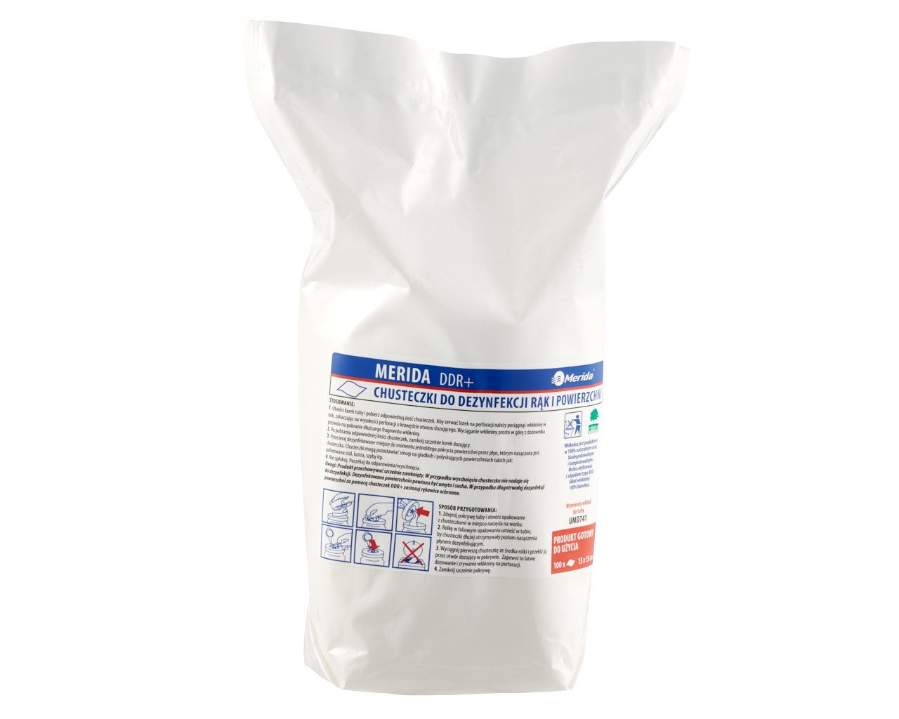 – chusteczki Merida POLANA DDR+ to produkt zawierający mieszaninę trzech substancji czynnych (etanol, izopropanol i fenoksyetanol), skutecznych w walce z grzybami, bakteriami i wirusami (pozwolenie na obrót produktem biobójczym nr 3329/TP/2020)
