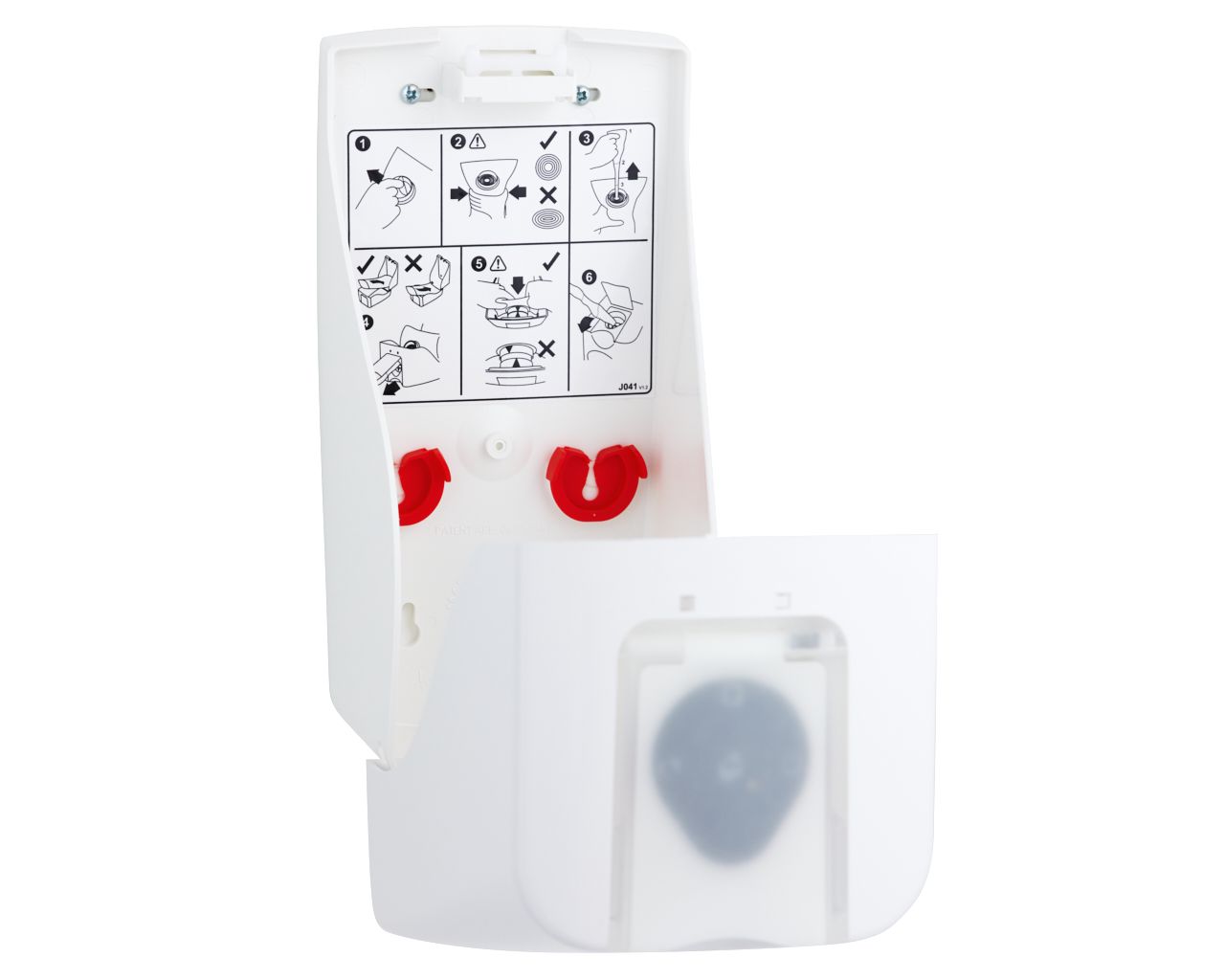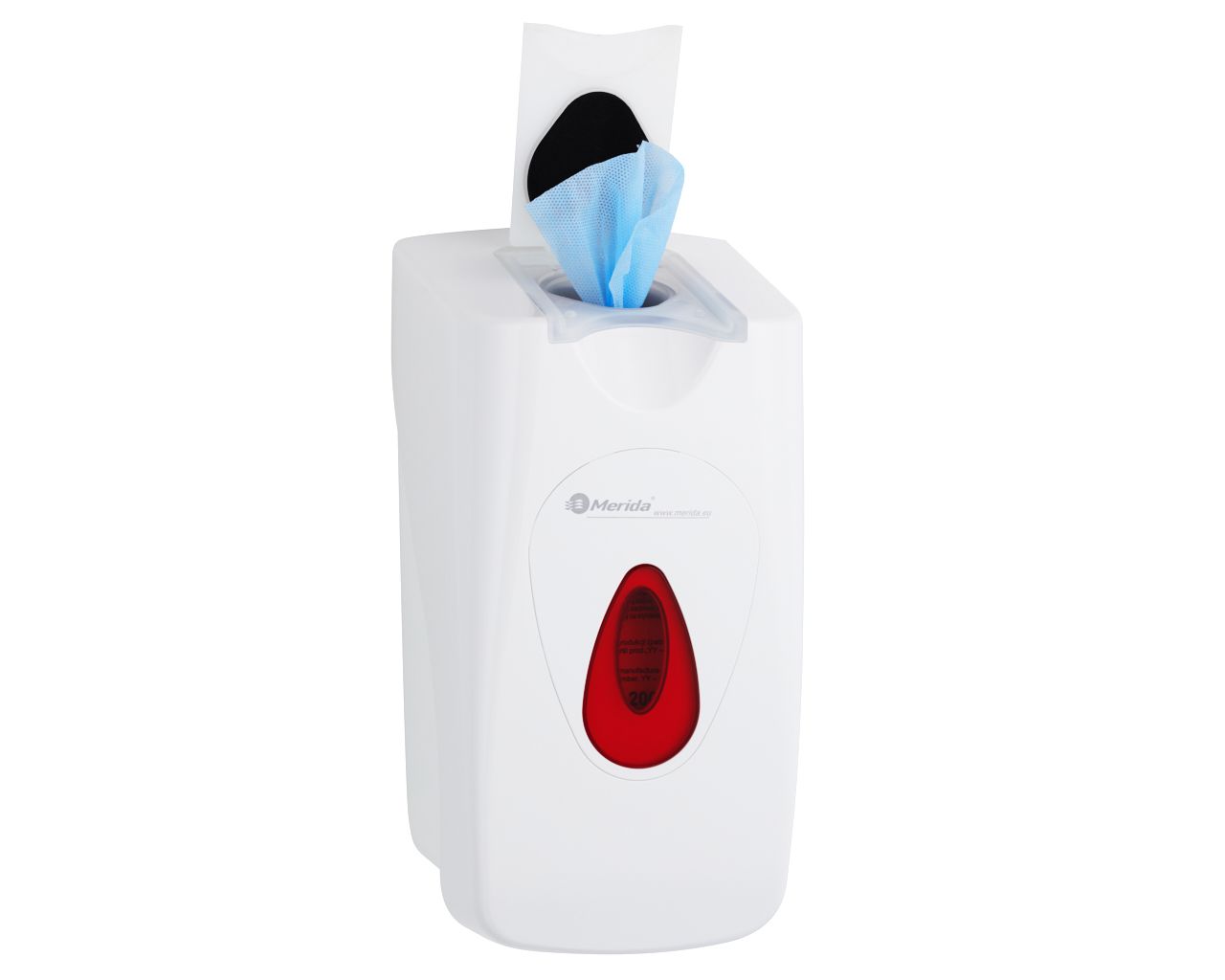 Dozownik nasączonych chusteczek do dezynfekcji rąk i powierzchni na jednorazowe wkłady MERIDA TOP białyokienko czerwone
