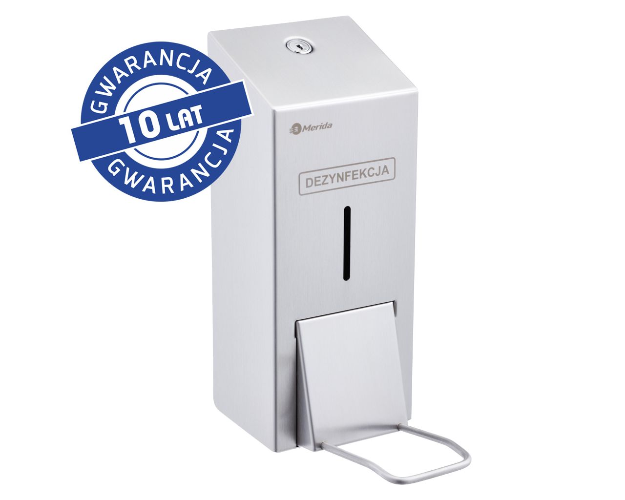Dozownik płynu dezynfekcyjnego w sprayu na jednorazowe wkłady 1000 ml z przyciskiem łokciowym MERIDA STELLAstal matowa