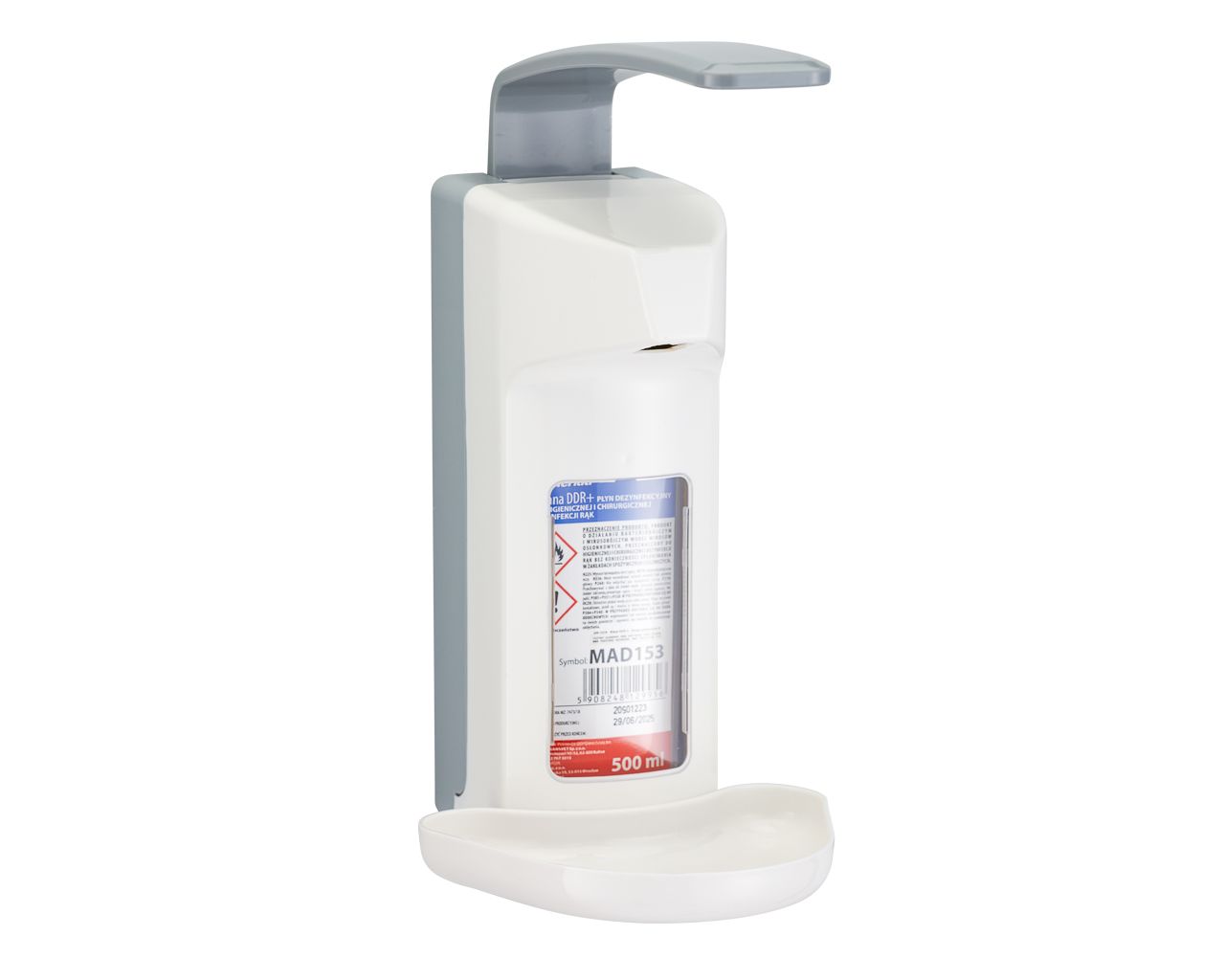 Dozownik z przyciskiem łokciowym na wkłady 500 mlz tacką ociekowątworzywo ABS