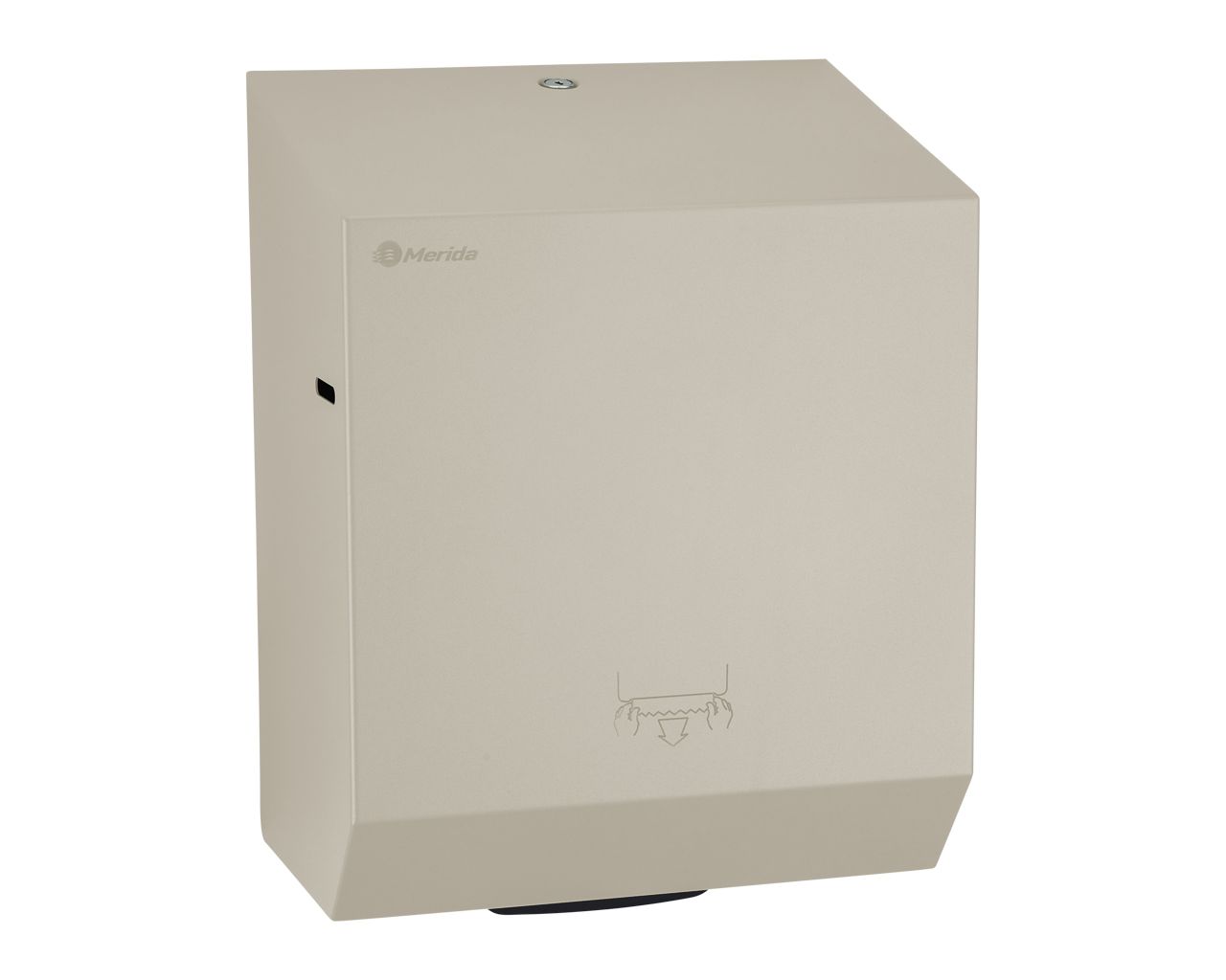 Mechaniczny podajnik ręczników papierowych zapewnia higieniczne użytkowanie, dotykany jest tylko pobierany ręcznik. Pobranie ręcznika uruchamia mechanizm odcinający listek o długości 25,5 cm. Urządzenie charakteryzuje się cichą i delikatną pracą mechanizmu odcinającego. W sytuacji awaryjnej ręcznik można wysunąć przez naciśnięcie dźwigni PUSH, znajdującej się w dolnej części podajnika. Uchwyt rolki wyposażony w system ułatwiający zakładanie ręcznika. Podajnik posiada łatwy dostęp do mechanizmu tnącego umożliwiający bezproblemowe czyszczenie oraz konserwację urządzenia. Wykonany ze stali nierdzewnej. Obudowa pokryta specjalną strukturalną jedwabiście szarą powłoką. Podajnik ręczników zabezpieczony jest trwałym stalowym zamkiem bębenkowym. Zamek zlicowany z powierzchnią urządzenia. Łączenia boków podajnika ręczników są spawane i szlifowane. Urządzenie posiada niewidoczne zawiasy. Zamykany na kluczyk.