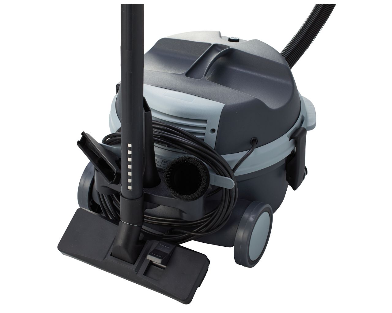 Profesjonalny odkurzacz przeznaczony do zbierania kurzu i małych osadów. Łatwy w użyciu, posiada komplet akcesoriów. Zapewnia skuteczne, szybkie i kompleksowe czyszczenie. Niewielkie rozmiary, niski poziom hałasu (57 db) oraz praktyczny uchwyt na akcesoria czyni z niego doskonałe urządzenie do pracy w hotelach, pensjonatach, domach wypoczynkowych itp. Spełnia normy hotelowe dotyczace poziomu hałasu.
