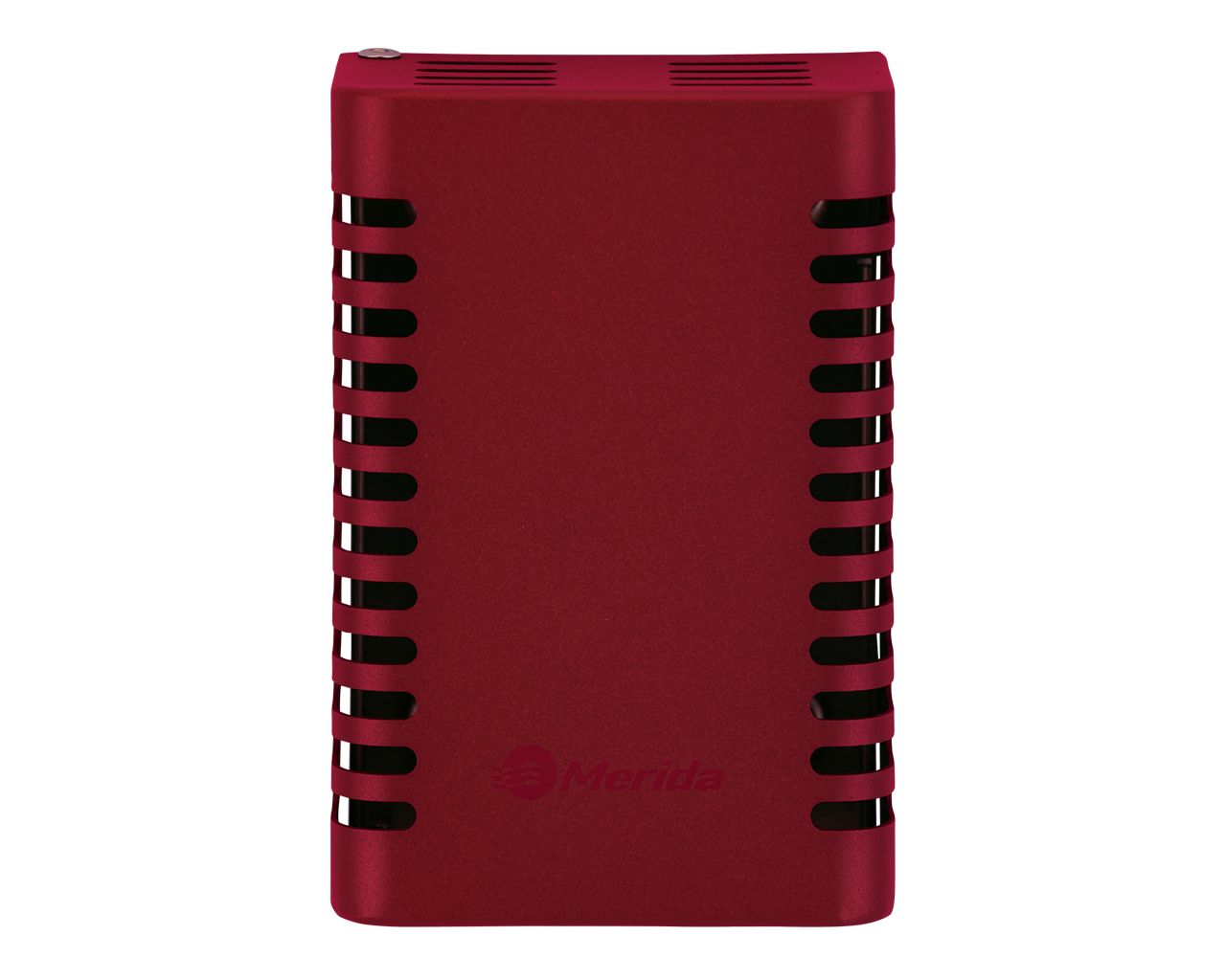 wymuszoną jedynie przez naturalną cyrkulację powietrza w pomieszczeniu (bez baterii, bez aerozoli, bez emisji szkodliwych gazów). Wykonany ze stali nierdzewnej pokrytej specjalną strukturalną czerwoną powłoką. Zabezpieczony trwałym stalowym zamkiem bębenkowym, zamek zlicowany z powierzchnią urządzenia. Łączenia boków spawane i szlifowane, niewidoczne zawiasy. Zamykany na kluczyk. Możliwość montażu na ścianie lub używania jako urządzenie wolnostojące.