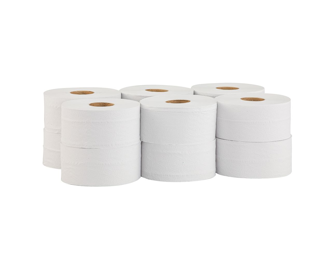 Papier toaletowyMERIDA CLASSIC ECOLABEL, jednowarstwowy, biały, średnica 19 cm, długość 220 mzgrzewka 12 szt.