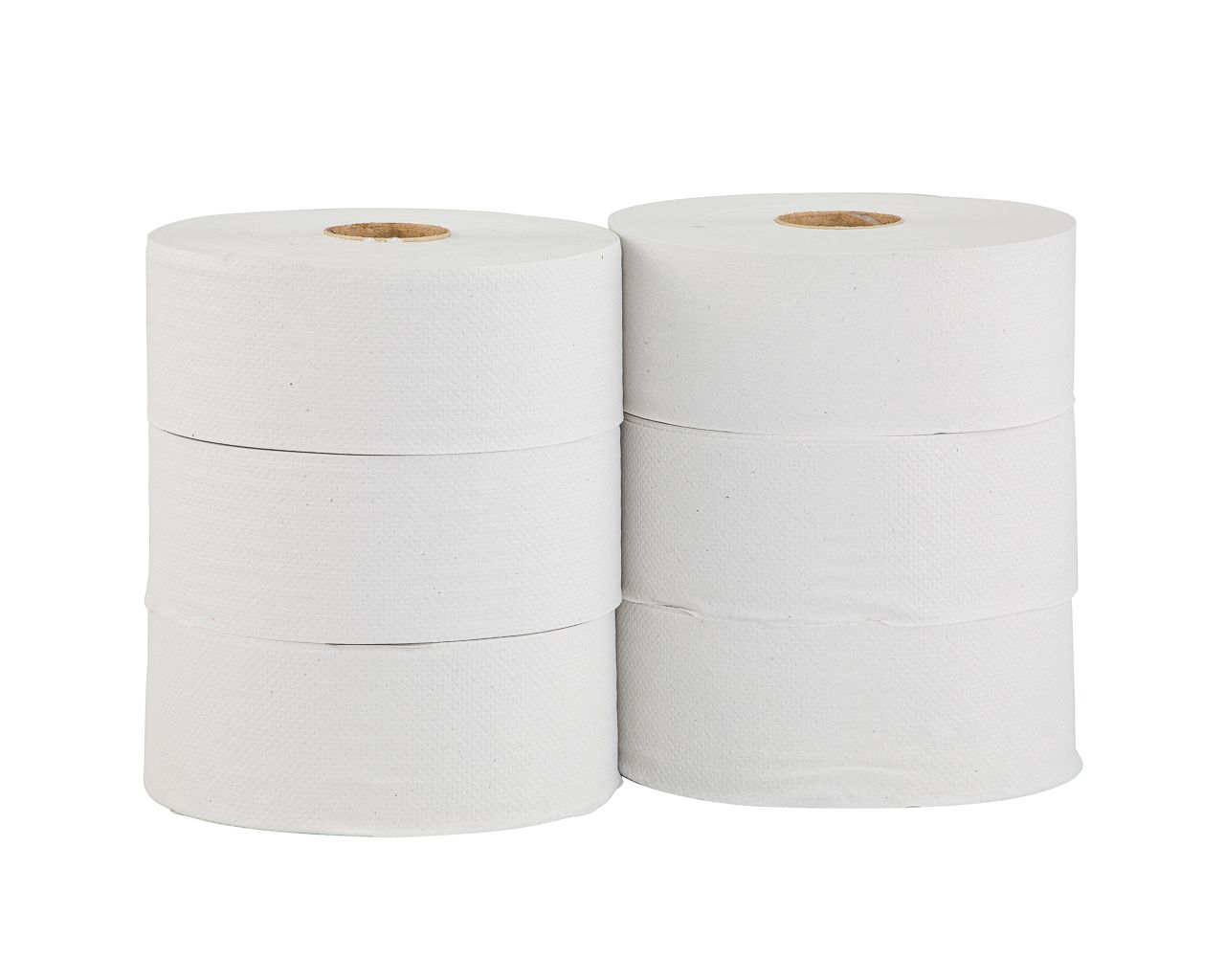 Papier toaletowyMERIDA CLASSIC ECOLABEL, jednowarstwowy, biały, średnica 23 cm, długość 340 mzgrzewka 6 szt.