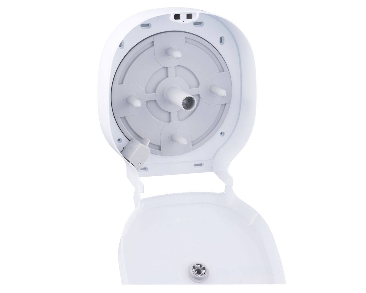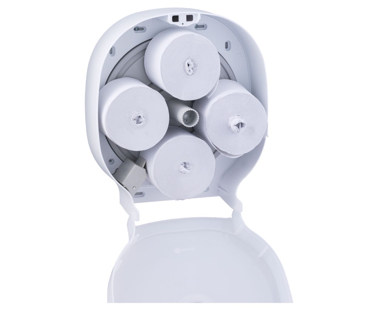 – dzięki specjalnemu mechanizmowi, kolejna rolka papieru dostępna jest dopiero po zużyciu tej obecnie używanej, co eliminuje problem pozostających końcówek rolki