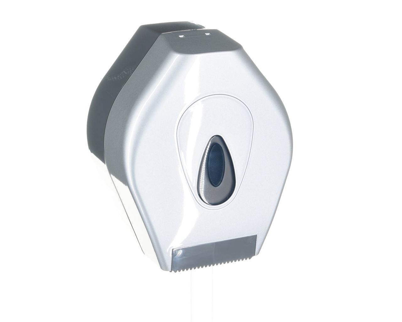 Pojemnik wykonany z wysokiej jakości tworzywa ABS. Odporny na działanie UV. Posiada ozdobne okienko w kolorze szarym, które umożliwia kontrolę ilości papieru w pojemniku. Można w nim stosować papier o maksymalnej średnicy roli 19 cm. Pojemnik zamykany na kluczyk.