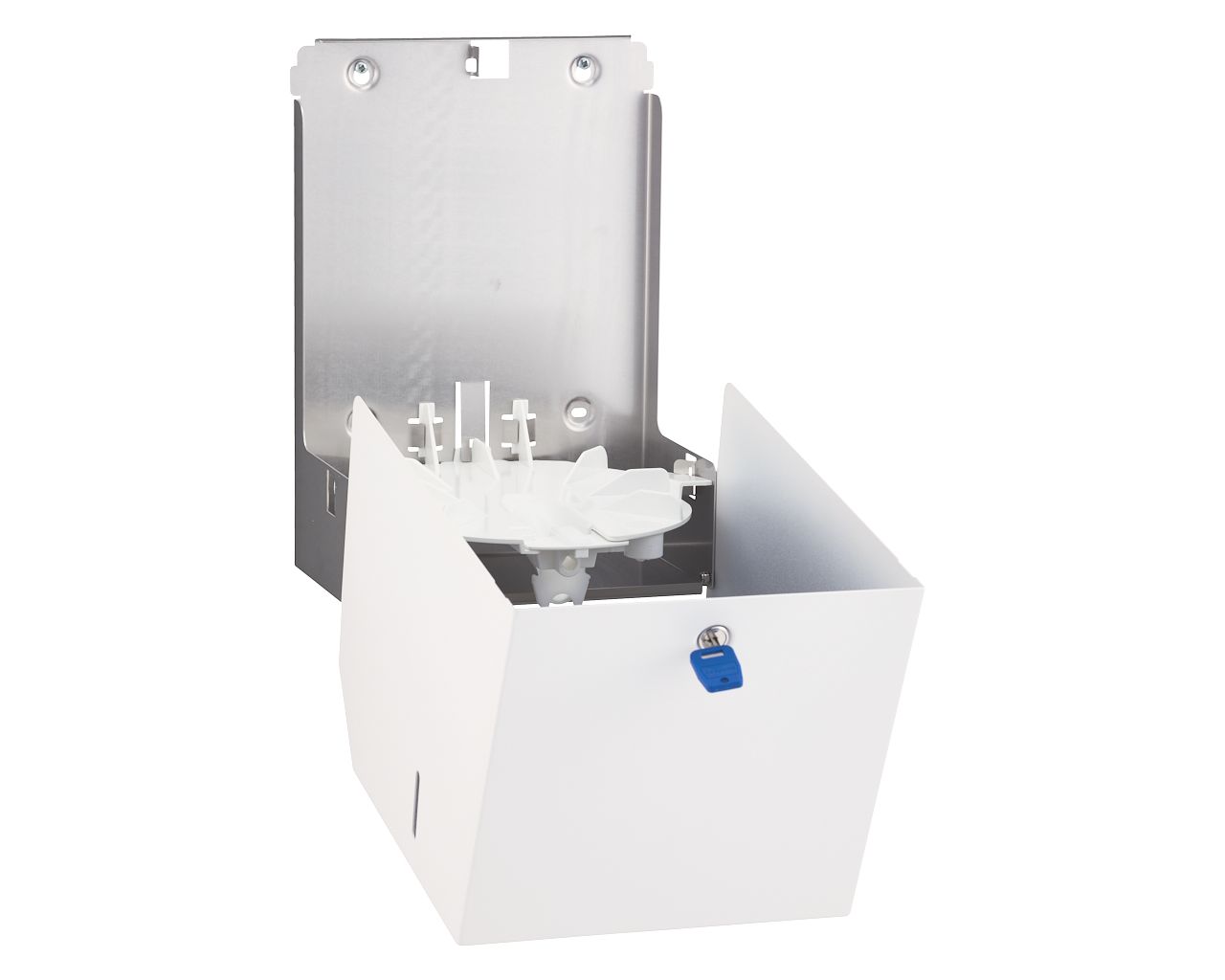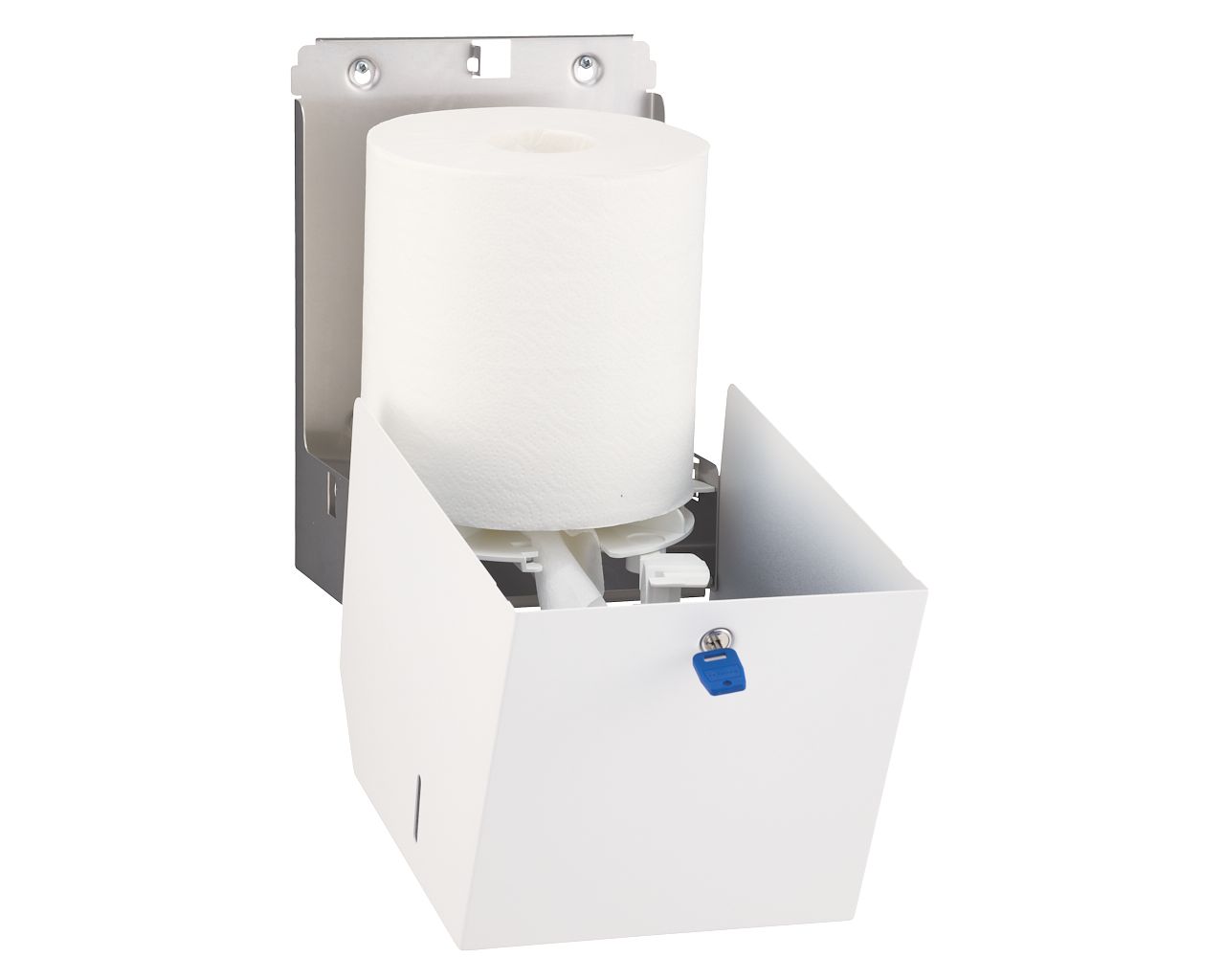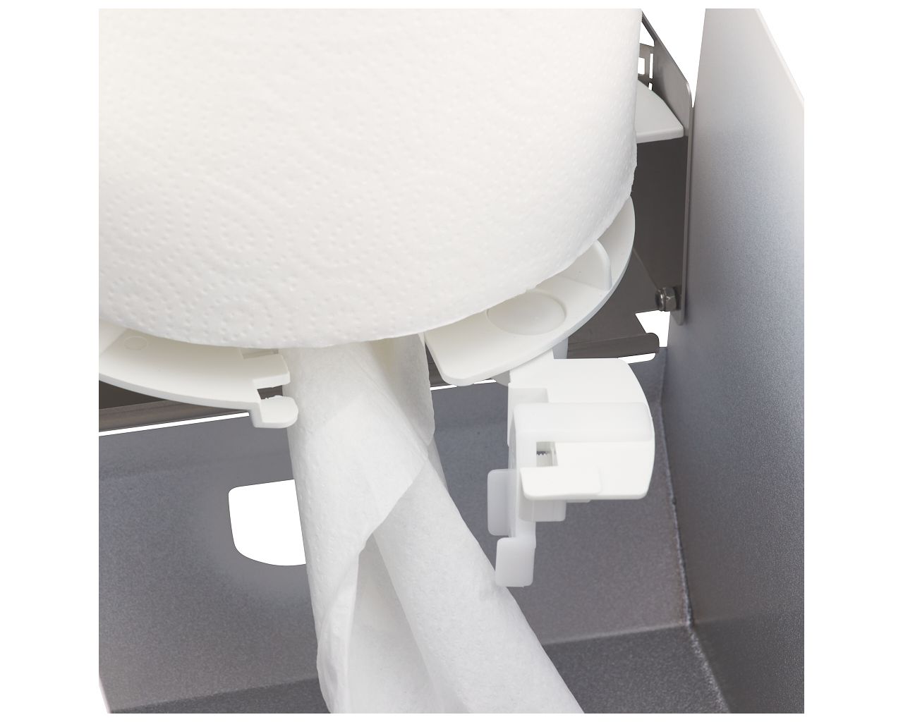 – wkładka dozująca może być wyjęta, co umożliwia pobranie ręcznika o dowolnej długości (w przypadku ręczników z perforacją)
