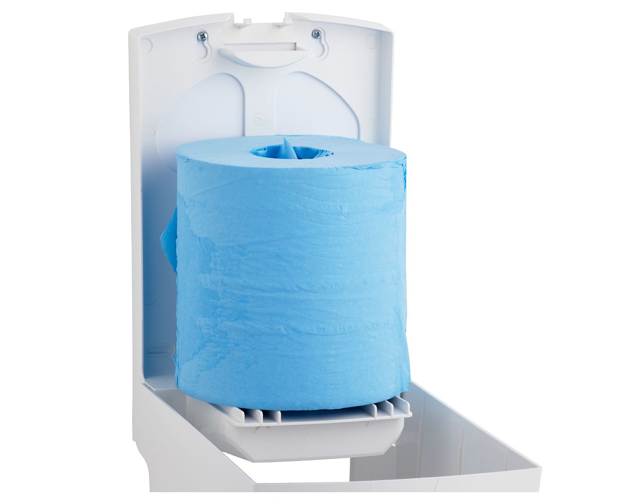– umieszczony w podstawie pojemnika reduktor nie pozwala na samoistne wypadanie papieru, jednak papier w otworze (wyciągany ze środka roli) jest łatwo dostępny