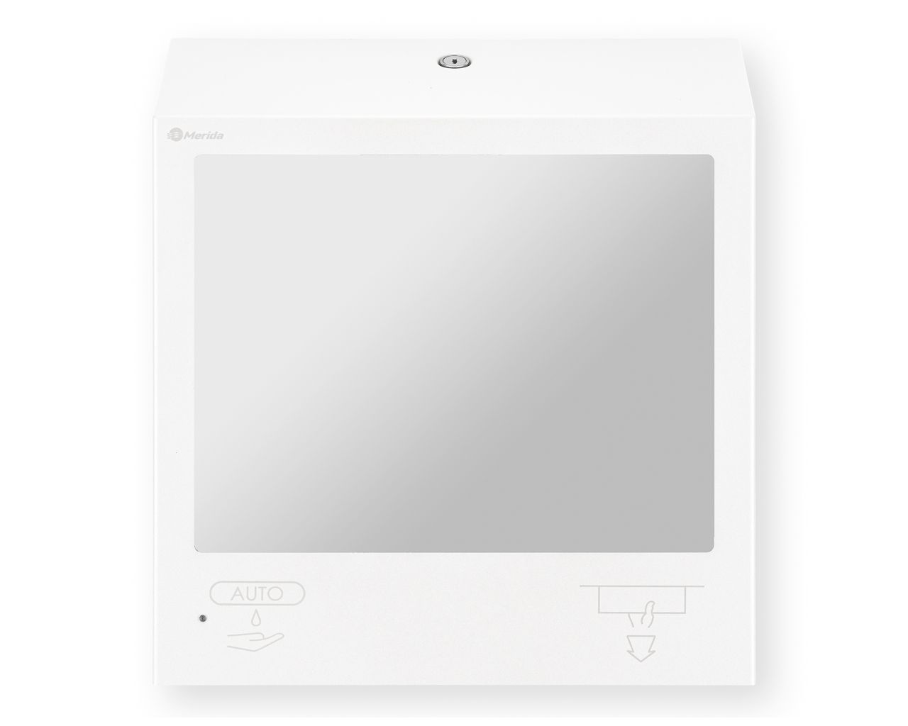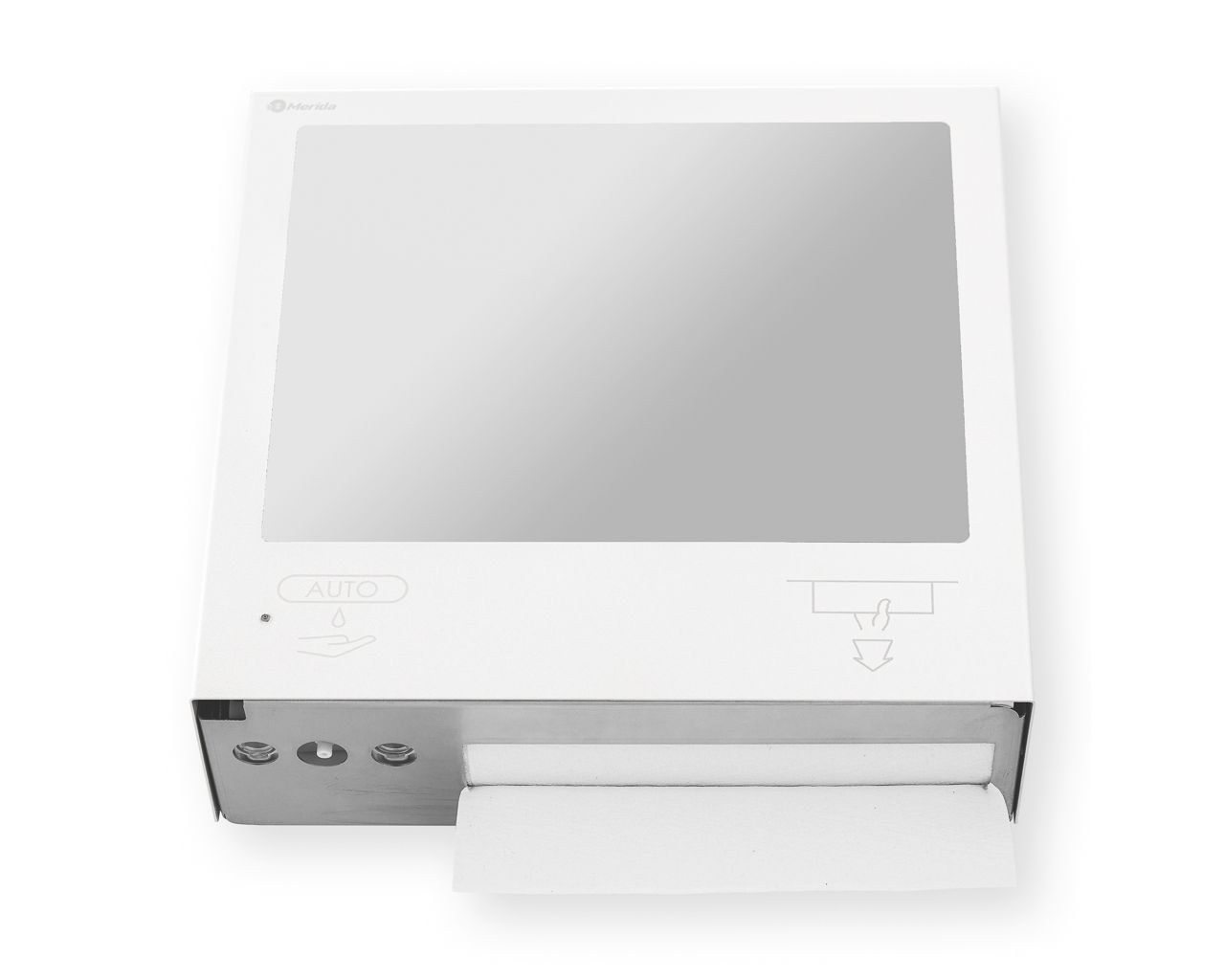 Pojemnik na ręczniki składane z bezdotykowym automatycznym dozownikiem mydła w pianie i z lustrem ze stali SuperMirror „3 w 1″ MERIDA STELLA SLIM WHITE LINE COMBObiały