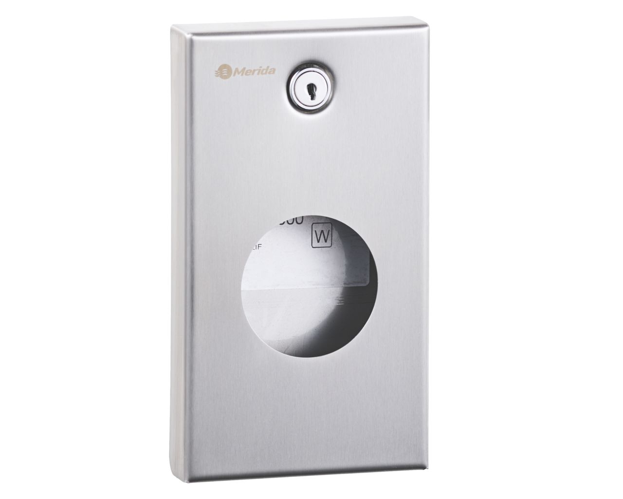Pojemnik na torebki higieniczne posiada nieduże wymiary. Urządzenie pomieści wymienny wkład do pojemnika, który zawiera 30 szt. torebek higienicznych. Pojemnik na torebki higieniczne zabezpieczony jest trwałym stalowym zamkiem bębenkowym. Zamek zlicowany z powierzchnią urządzenia. Łączenia boków pojemnika są spawane i szlifowane. Urządzenie posiada niewidoczne zawiasy, obudowa i tylna ścianka wykonana ze stali nierdzewnej.