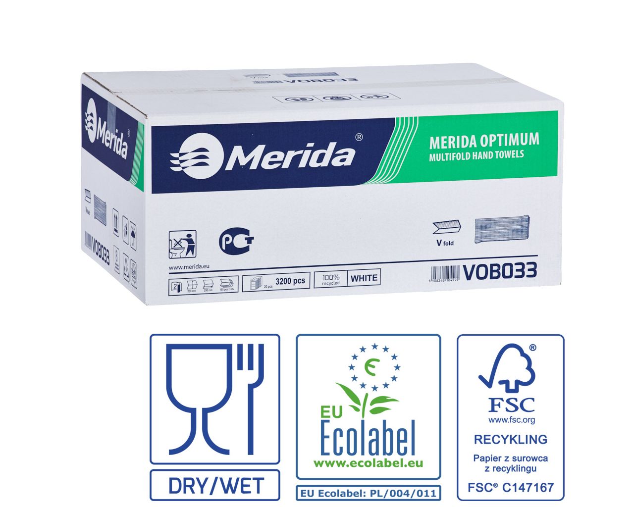 Ręczniki papierowe MERIDA OPTIMUMbiałe, dwuwarstwowe, 3200 szt.ECOLABEL