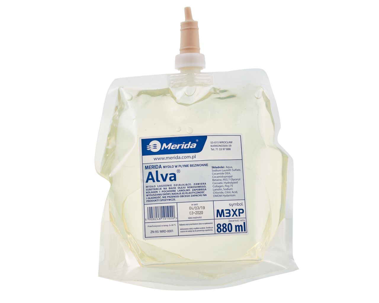 Specjalistyczne mydło w płynie dla przemysłu spożywczego MERIDA ALVA BEZWONNEwkład jednorazowy 880mlbez zapachu