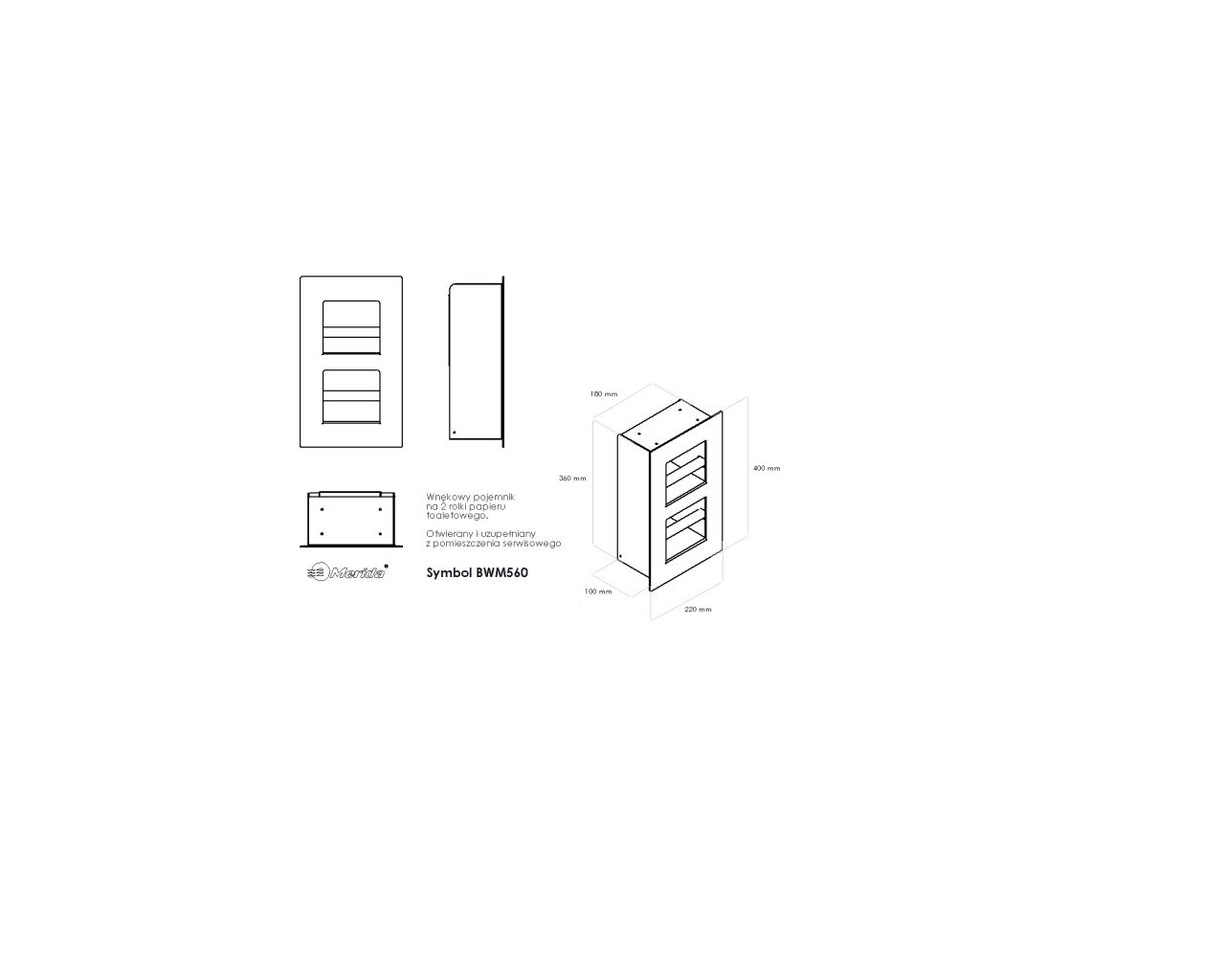 Wnękowy pojemnik na dwie małe rolki papieru toaletowegoMERIDA DRAGONstal matowa