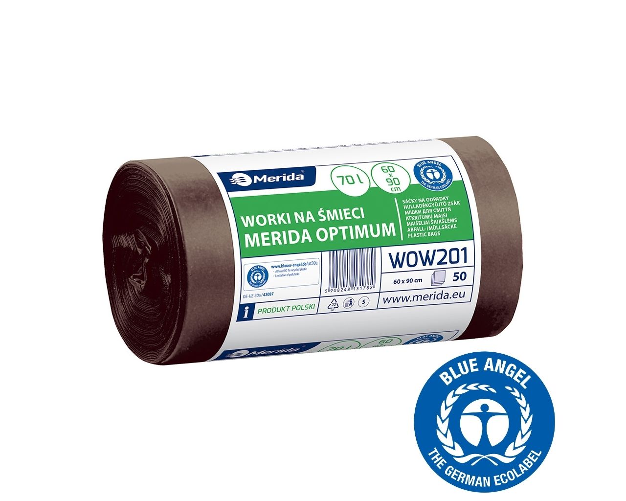 Worki na bioodpady 70 lMERIDA OPTIMUM BLUE ANGEL, brązowe, 60×90 cmrolka 50 szt.