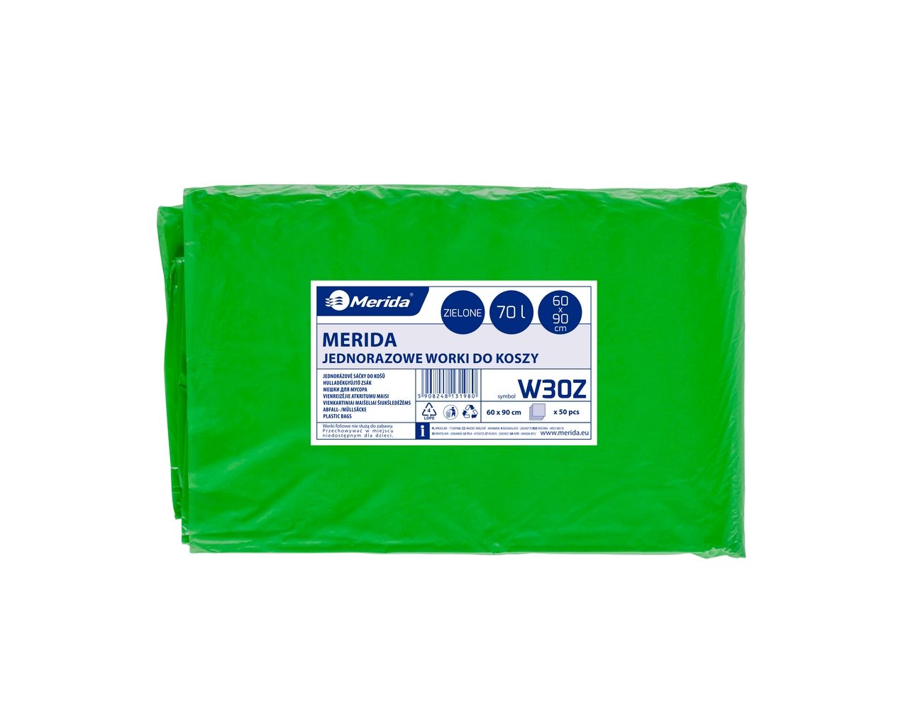 Worki na śmieci 70 lMERIDA CLASSIC, zielone, 60×90 cmpaczka 50 szt.