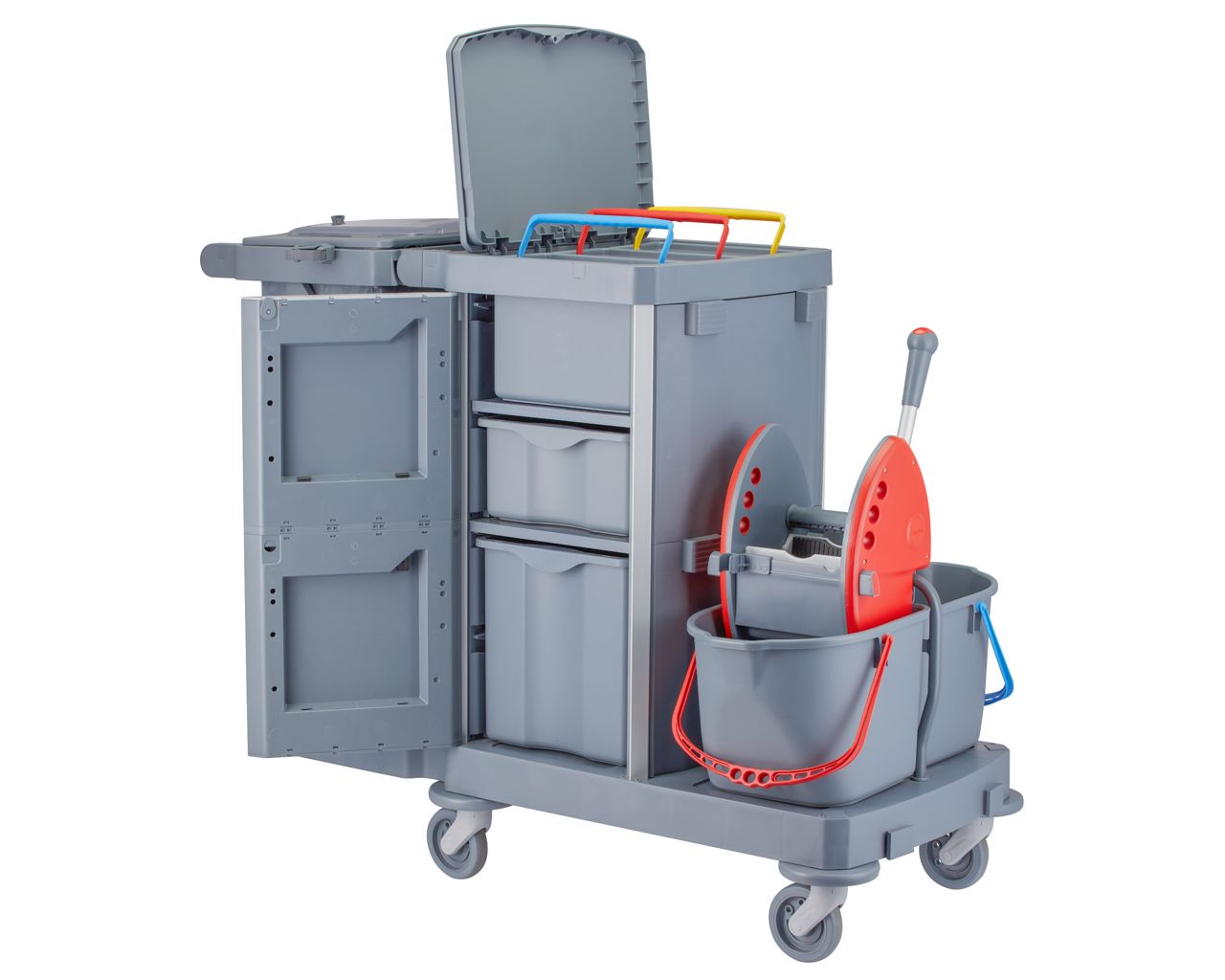 – wielofunkcyjny wózek serwisowy do sprzątania, zbierania odpadów, czyszczenia podłóg i powierzchni